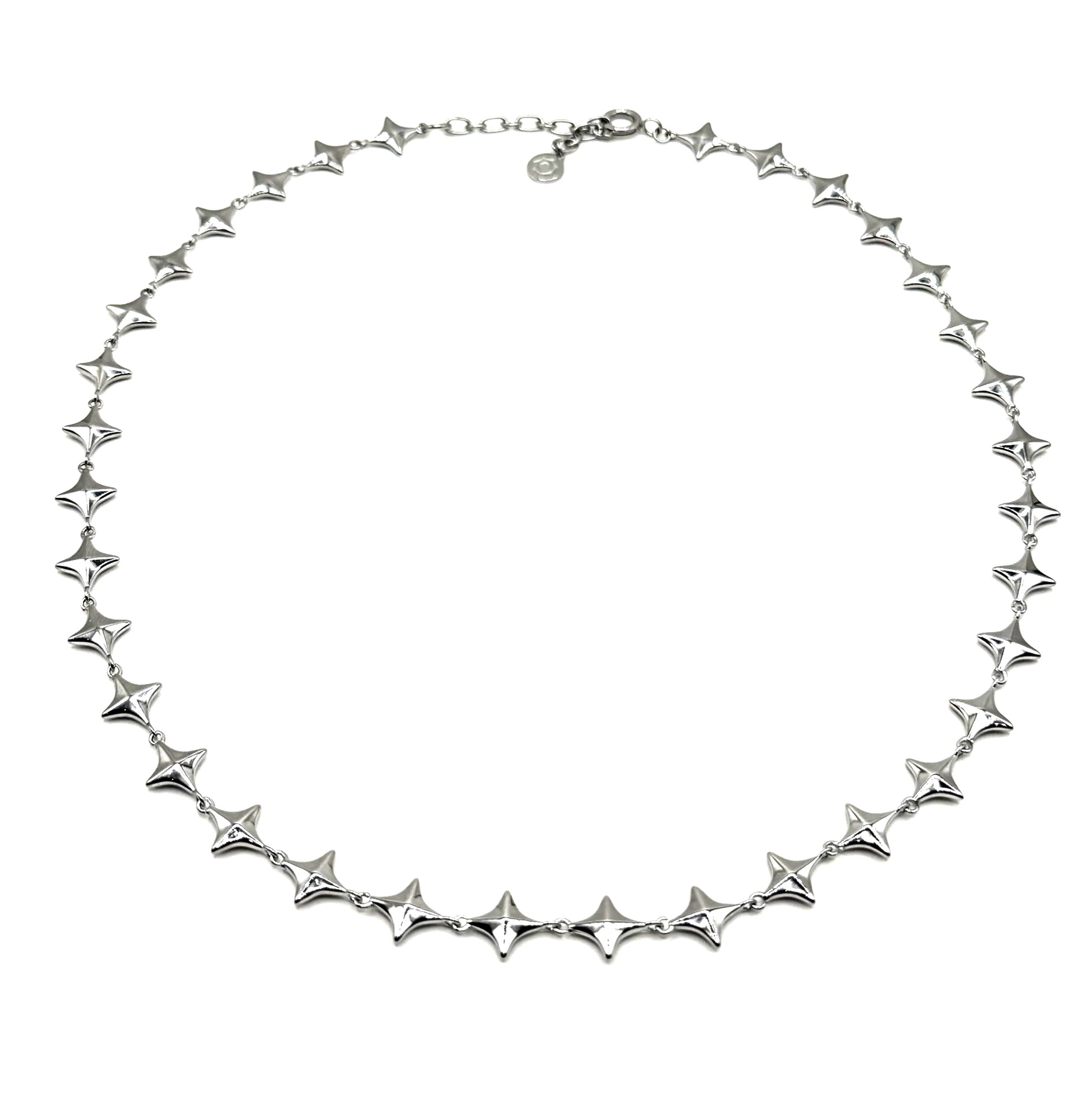Sharp meets celestial. This stainless steel necklace features repeating star links accented with spikes, adding edge and attitude to a classic motif. Designed to elevate any look, it’s bold, confident, and made for standing out.
